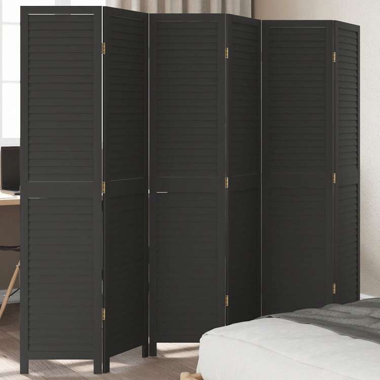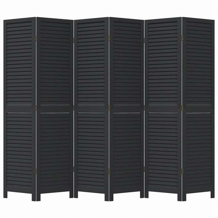 vidaXL パーティション 6枚パネルブラック無垢材パウロウニア家具 間仕切り