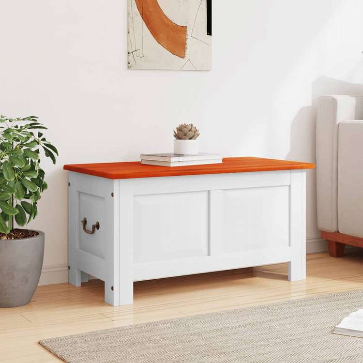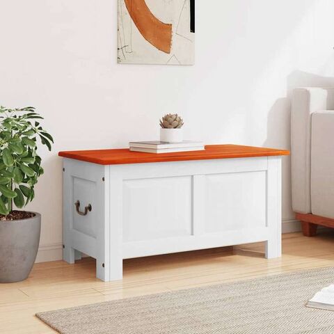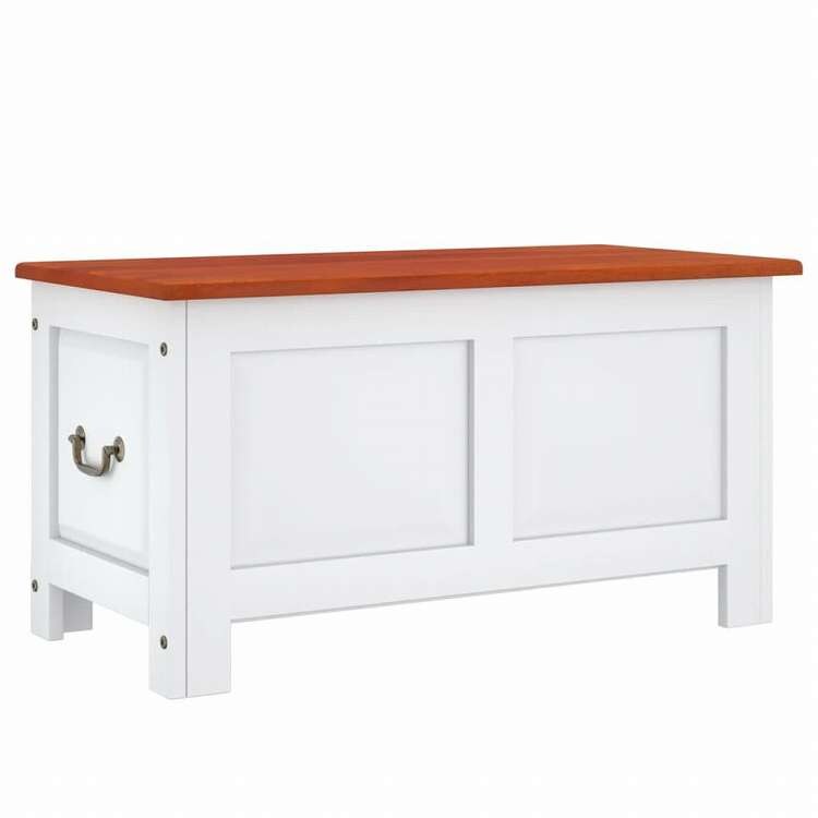 vidaXL 収納チェスト ふた付き ブラウン&ホワイト アカシア無垢材家具 キャビネット&収納 収納チェスト