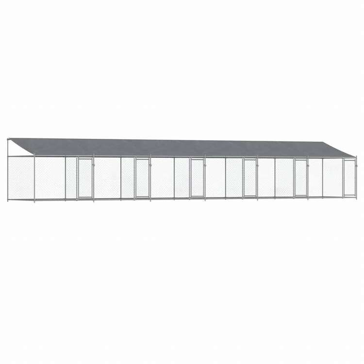 vidaXL 犬用ケージ ルーフ&ドア付き グレー 12x2x2 m 亜鉛メッキ鋼動物&ペット用品 ペット用品 犬用品 犬小屋・ドッグラン
