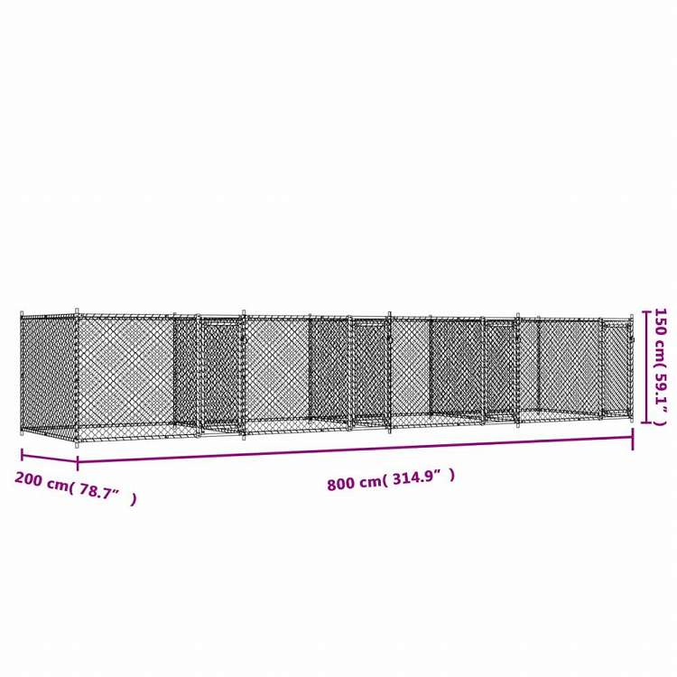 vidaXL 犬用ケージ ドア付き グレー 8x2x1.5 m 亜鉛メッキ鋼動物&ペット用品 ペット用品 犬用品 犬小屋・ドッグラン