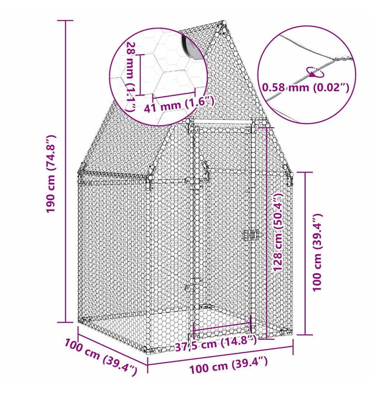 この実用的で広々とした鶏小屋は、鶏、雌鶏、アヒル、その他の小動物を屋外で飼育するためのぴったりな選択肢であり、快適に過ごせます。耐久性と頑丈さを兼ね備えたフレーム:この鶏小屋は亜鉛メッキ鋼で作られています。鋼は非常に硬く、強度の高い素材です。頑丈さと安定性を備えています。亜鉛メッキは耐腐食性に優れており、屋外や過酷な環境で使用される製品に適しています。十分な活動スペース:この鶏小屋は、鶏が楽に歩き回れる十分な活動スペースを提供します。また、鳥、ウサギ、アヒル、ガチョウなどの小動物の飼育にも適しています。さらに安心:この鶏小屋のヒンジドアにはロック可能なラッチシステムが搭載されており、鶏の安全をさらに確保します。
