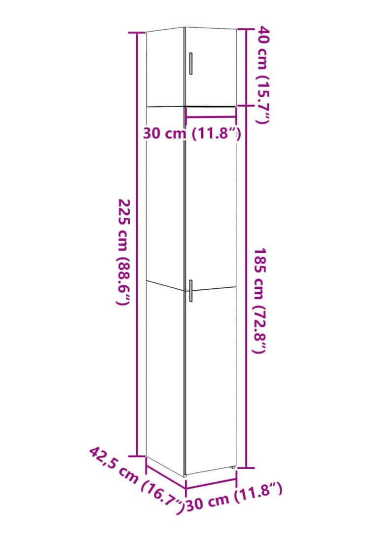 vidaXL スリム収納キャビネット ホワイト 30x42.5x225cm エンジニアリングウッド家具キャビネット&収納サイドボード
