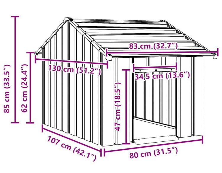 vidaXL 屋根付き犬小屋 83×130×85cm 亜鉛メッキ鋼 動物 ペット用品 ペット用品 犬用品 ドッグハウスのレビュー