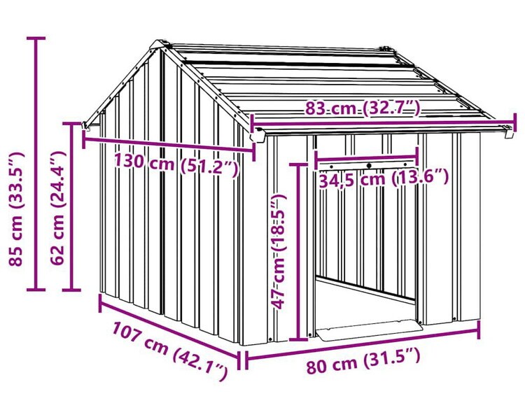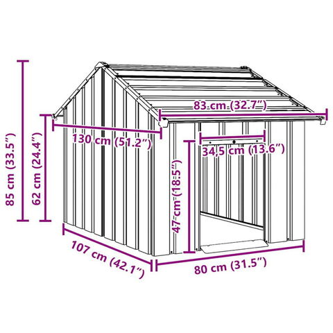 vidaXL 屋根付き犬小屋 83×130×85cm 亜鉛メッキ鋼 動物 ペット用品 ペット用品 犬用品 ドッグハウス
