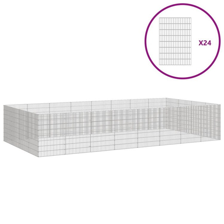 vidaXL 放し飼い動物用囲い 24パネル 54×80cm 亜鉛メッキ鉄板 動物 ペット用品 ペット用品 小動物用品 小動物 飼育 ケージ