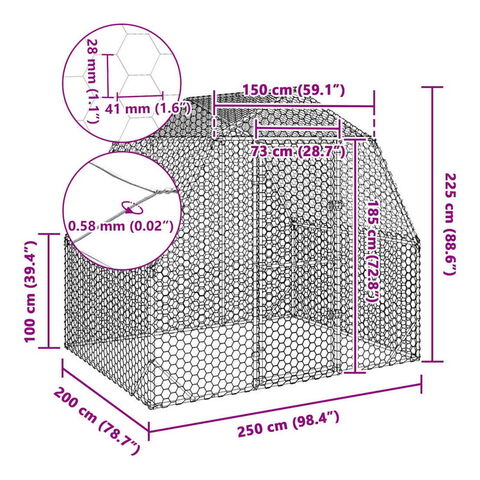 vidaXL 鶏小屋 2.5×2×2.25m 亜鉛メッキ鋼 動物 ペット用品 ペット用品 小動物用品 小動物 飼育 ケージ