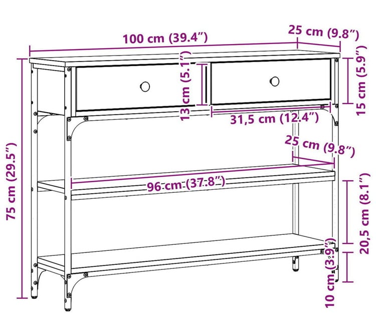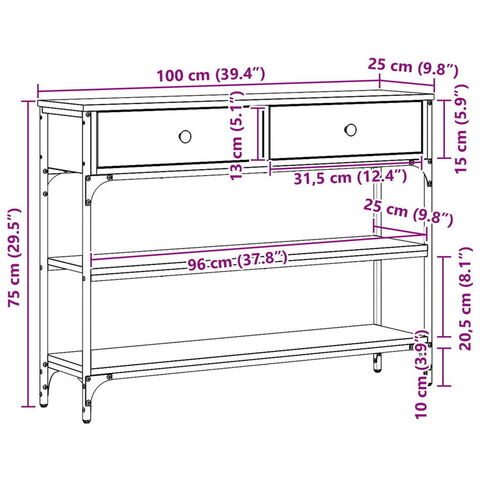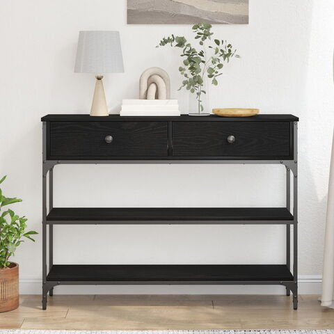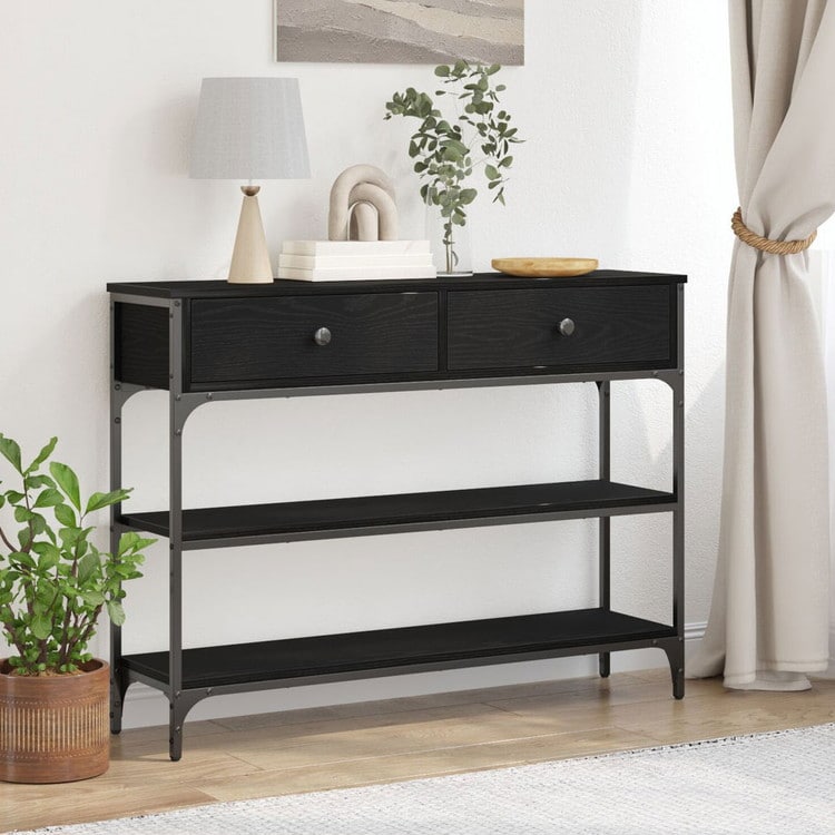 vidaXL コンソールテーブル ブラックオーク 100×25×75cm エンジニアウッド スチール 家具 テーブル アクセントテーブル エンドテーブル