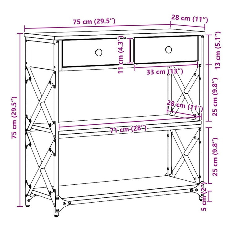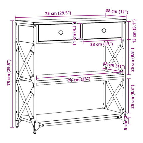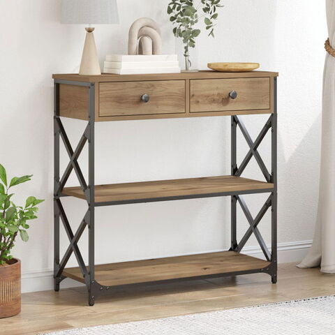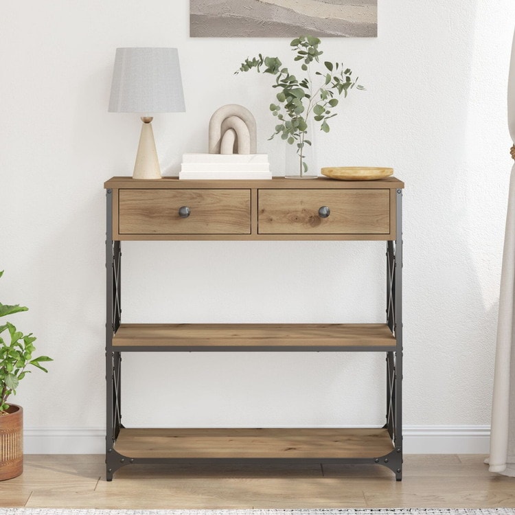 vidaXL コンソールテーブル アーティザンオーク 75×28×75cm エンジニアードウッド スチール 家具 テーブル アクセントテーブル エンドテーブル
