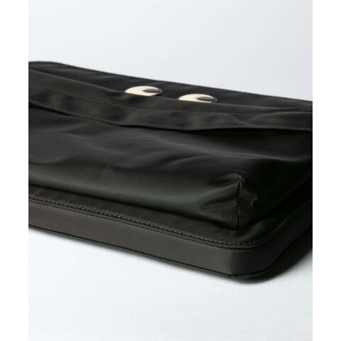 Eyes Technology Case は、通勤や旅行中にノートパソコンを保護するように設計されています。黒の ECONYL 再生ナイロン製で、革製の目、タッセル付きのジッパー、ポケットが 2 つ付いています。