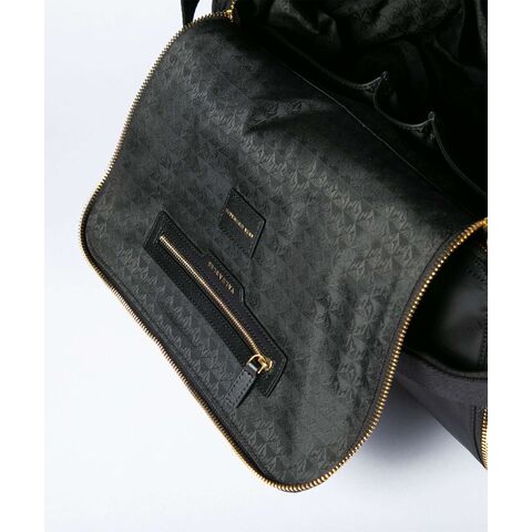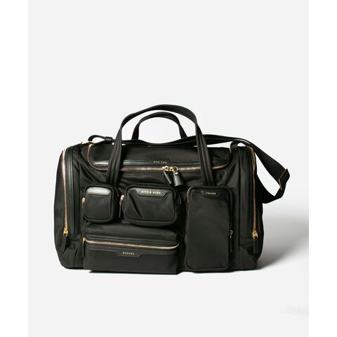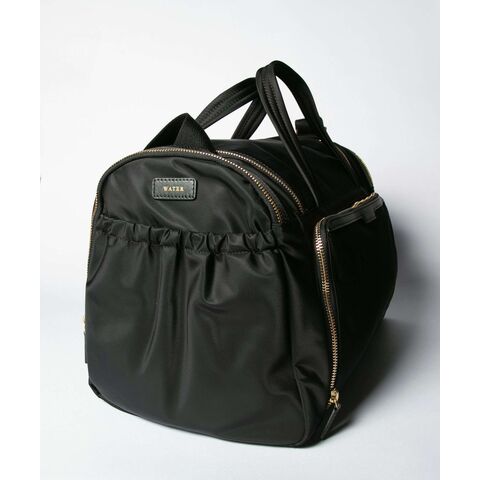 内部様式:取り出し可能な「SHOWER」ラベル付きポーチ、「PRE-WORKOUT」「POST-WORKOUT」「VALUABLES」のラベル付きポケット