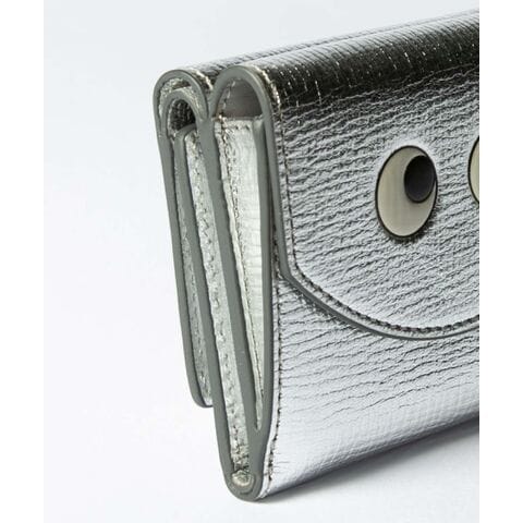 小型ながら完璧な形の 三つ折りウォレットは、あらゆる金銭的必需品を収納できるように設計されています。シルバーのカプラレザーで作られ、アイズ モチーフのアップリケが施され、コイン、紙幣、カード用のセクションがあります。