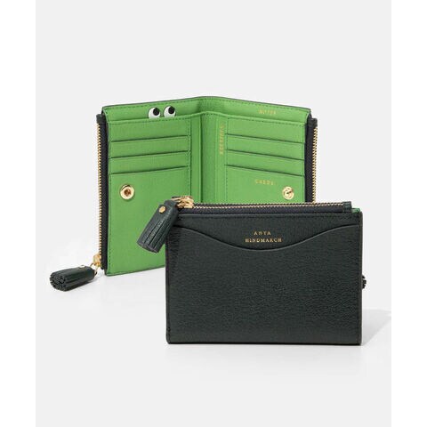 アニヤ ハインドマーチ ANYA HINDMARCH Peeping Eyes Small Double Zip Wallet Peeping Eyes in Ink Green Shiny Capra ピーピング アイズ 5050925197762