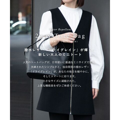 【日常に溶け込むミニマル】[ドライグレイントート ミニ] - 撥水レザー「ドライグレイン」が輝く、新しい大人のミニトート人気のトートバッグが、日常使いに最適なミニサイズで登場。洗練されたシンプルさと、独自開発の撥水レザー「ドライグレイン」が、あなたの毎日を軽やかに、そしてスマートに彩ります。小さなサイズに凝縮された、上質な機能美をぜひご体感ください。