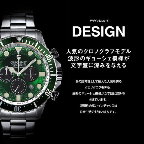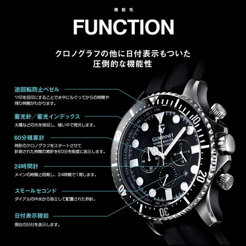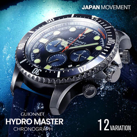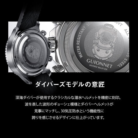 腕時計 メンズ メンズ腕時計 メンズウォッチ 男性用 ギフト プロダイバー ダイバーズウォッチ クロノグラフ ブランド 時計 大人 おしゃれ ビジネス 防水 電池式 ハイドロマスター プレゼント GUIONNET クォーツ ブラック ホワイト 黒 白 ネイビー 誕生日 贈り物