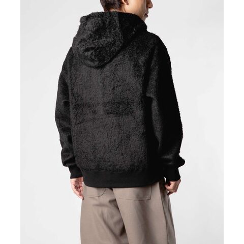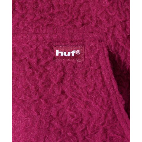 起毛フリース素材、60/40コットン(420G)フロントにカンガルーハンドポケット首元にHUF織りラベルあり