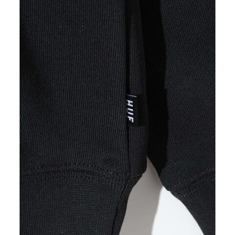 本体:コットン80%、ポリエステル20%リブ:コットン95%、ポリウレタン5%スペックワンウォッシュ仕様の裏起毛フロントにカンガルーハンドポケット首元にHUF織りラベルあり付属品生産国中国