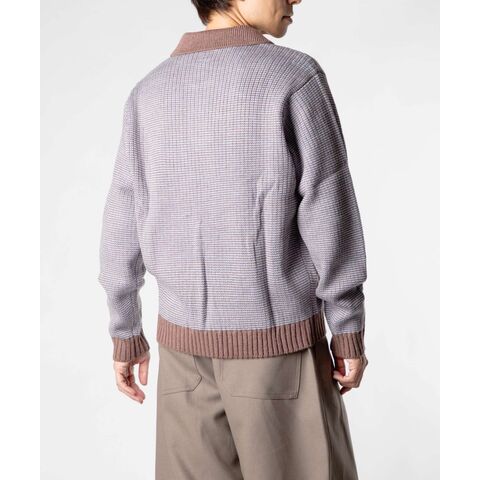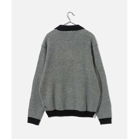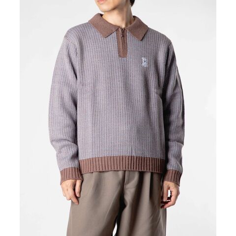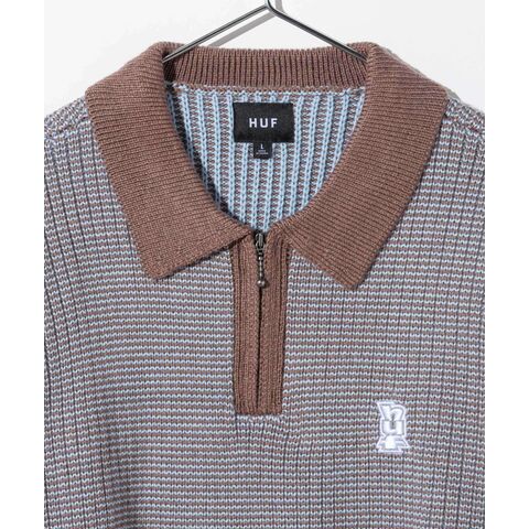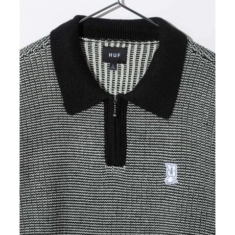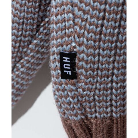 フロントにジップクロジャー2トーンワッフルニット、 70/30アクリルウール首元にHUF織りラベルあり