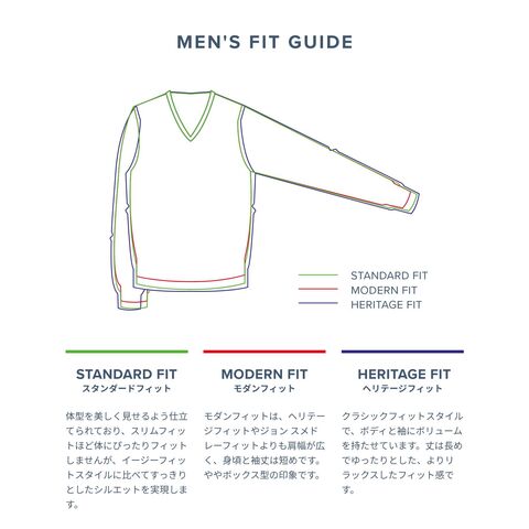 FIT GUIDE : STANDARD FIT スタンダードフィット30ゲージのエクストラファインメリノウールで編み上げられた、ジョンスメドレーならではの柔らかな肌触りのニットウェア