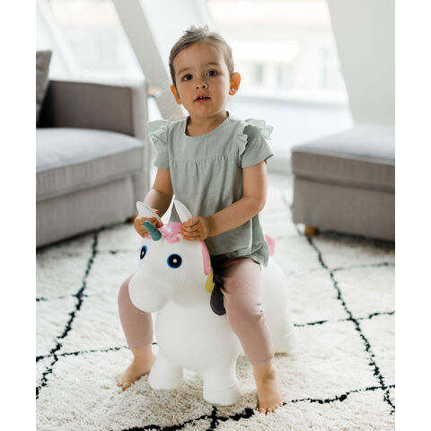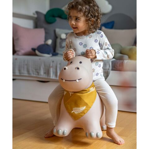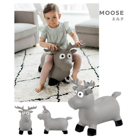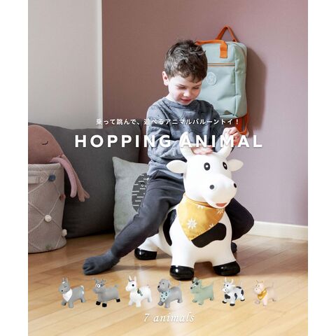 空気を入れて遊ぶバルーントイ「ホッピングアニマル」は、子どもの自由な想像力を刺激します。屋内外どちらでも使用することができ、ジャンプやバランスはもちろん、なでたり、ごはんをあげたりと遊び方は無限大。安定感のある座面で、バランス感覚や運動能力を向上をサポートします。付属の空気入れ(ポンプ)で膨らませることができ、必要に応じて空気を調整することができます。お手入れも簡単で、湿った布で拭いたり、流水で洗うことが可能です。どのデザインもユニセックスで、こどもが喜ぶことはもちろん、お部屋のインテリアになじみます。