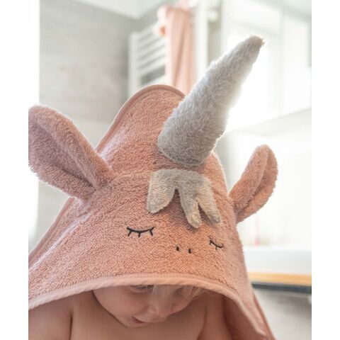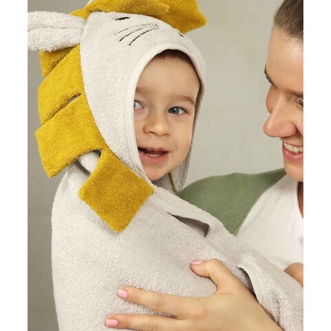 お風呂上がりのお家でも、プールでも、旅行先でも、子どもの快適なフード付きタオルです。キュートなデザインで、子どもが喜ぶこと間違いなし!コットン100%(STANDARD 100 by OEKO-TEX(R))を使用したソフトなタオルケットで、かわいらしいディテールが特徴です。乳幼児から就学前までお使いいただけます。上質なコットンを使用しているため、耐久性に優れ、もちろん温水での洗濯やタンブラー乾燥も可能です。