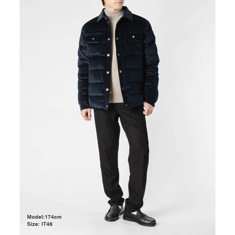 ITEM INFORMATION ムーレー MOORER MOUGI101097 TEPAK81 メンズ ジャケット カラー BLU / ネイビー サイズ 【IT 46】着丈:67cm 肩幅:45cm 袖丈:64cm 胸囲:106cm 重さ:825g 【IT 48】着丈:69cm 肩幅:46.5cm 袖丈:65.5cm 胸囲:110cm 重さ:855g 【IT 50】着丈:71cm 肩幅:48.5cm 袖丈:67cm 胸囲:116cm 重さ:880g 【IT 52】着丈:73cm 肩幅:49.5cm 袖丈:69cm 胸囲:122cm 重さ:915g 素材 表地:コットン 100% 裏地:ポリアミド100% 中綿:天然ダウン スナップボタン留め胸:フラップ付きパッチポケット / サイド:ファスナー付きウェルトポケット / 内側:貴重品用ポケットコットンベルベット生地(700ウェル)サーマルグレードB (-5度 / +12度)ブーダンキルティング仕上げ 生産国イタリア