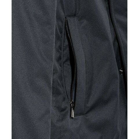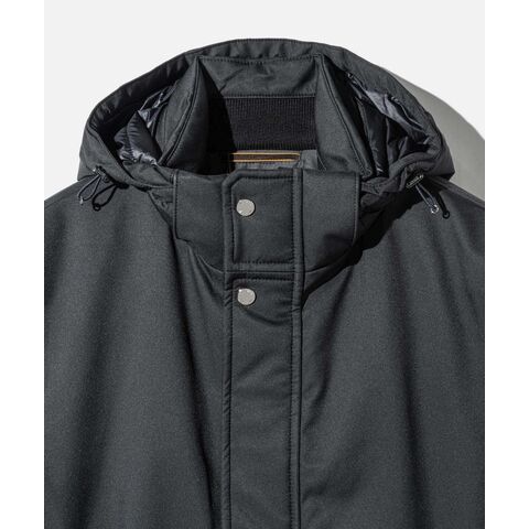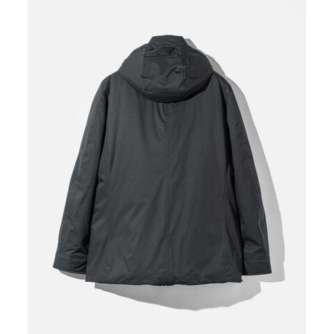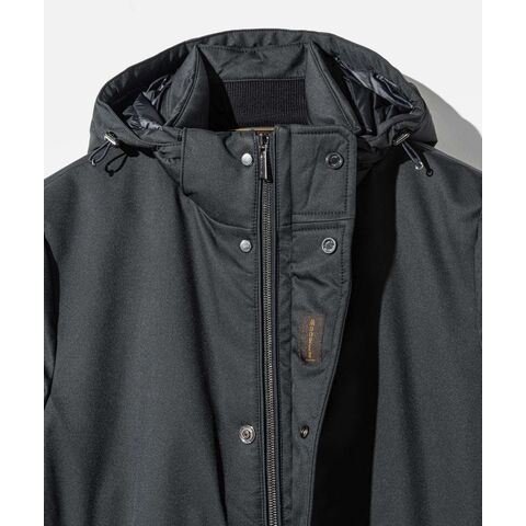 傘マーク2つ:防水性あり(長時間の耐雨性)テクニカルギャバジン生地二重開閉(ファスナー+内側ボタン)フード取り外し可能サーマルグレードB (-5度 / +12度)