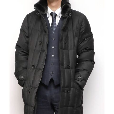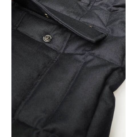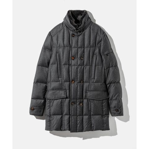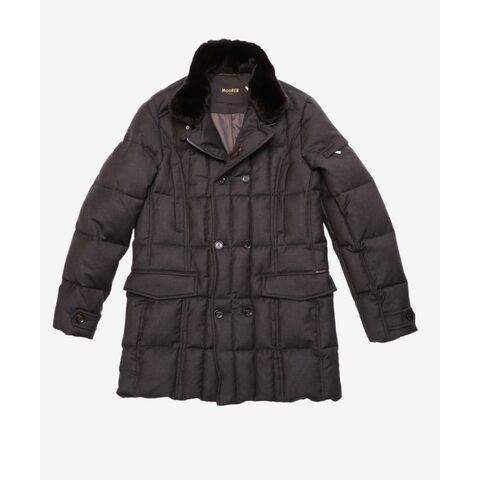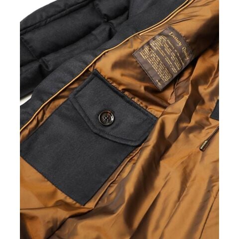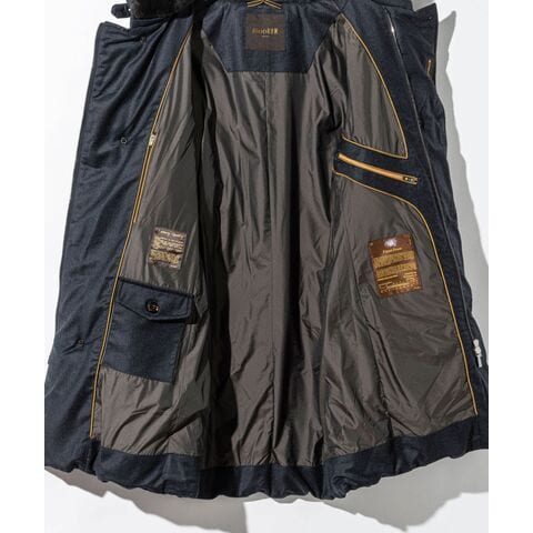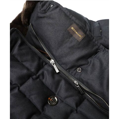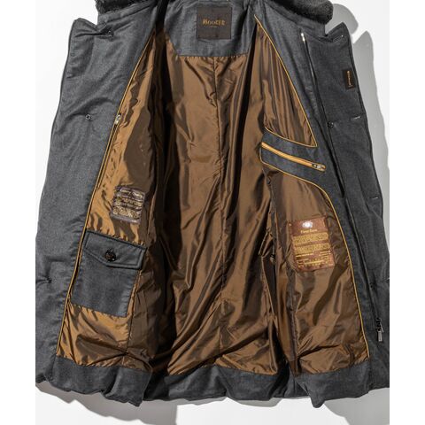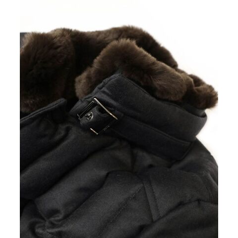 生地:メランジ調ウール・カシミヤ・フランネルヤーンストラップ付きファー(取り外し可能)二重開閉(ファスナー+ホーンボタン)
