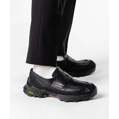 ローファーのアッパーデザインにトレッキング仕様のアウトソールを落とし込んだ斬新な一足。 アッパーには柔らかなベジタブルタンニンレザーを採用し、トレッドパターン仕様のVibram社のアウトソールは、粗い路面での使用を想定した抜群のグリップ感と耐久性を兼ね備えております。 ローファーの上品さとアウトソールの無骨な雰囲気が上手くミックスされた新鮮なデザインで、機能性に優れながら、ディティールとデザイン性を兼ね備えたモダンな雰囲気の一足です。