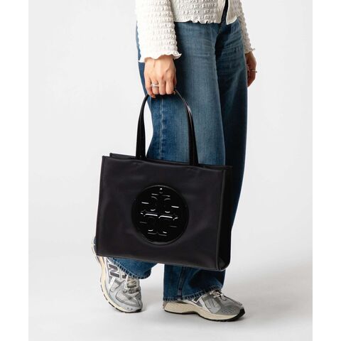 ITEM INFORMATION トリーバーチ TORY BURCH Ella エラ 178708 レディース トートバッグブランドトリーバーチ 型番178708 カラー BLACK / ブラック / 001 サイズ 本体サイズ : 縦幅26.5cm 横幅33.5cm 厚10.5cm 持ち手(高さ):20cm 持ち手(長さ):46.5cm 重さ:490g 素材 本体:ナイロン スペック 開閉様式:マグネット式 外部様式:ファスナーポケット×1、オープンポケット×1 内部様式:ボタン式ポケット×1 生産国カンボジア