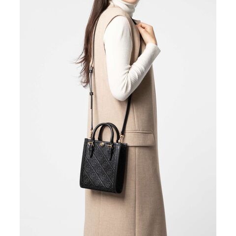 トリーバーチ TORY BURCH T Monogram Tモノグラム Leather Mini N/S Tote レザー ミニトート