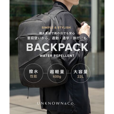 アンノウンアンドコー UNKNOWN&Co. 撥水 バックパック リュック 22L A4サイズ収納可能 PC収納 軽量 大容量 通勤 通学 ビジネス ジャパンデザイン メンズ バッグ