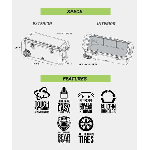 親密な集まり、ワイルドな探検、または自発的なロードトリップのための冒険家の究極のパートナーです。110クォートのアイスチェスト どこにでも持ち運べるほど小さく、冒険の必需品を収納するのに十分な大きさで、信頼できる相棒になるように設計されています。