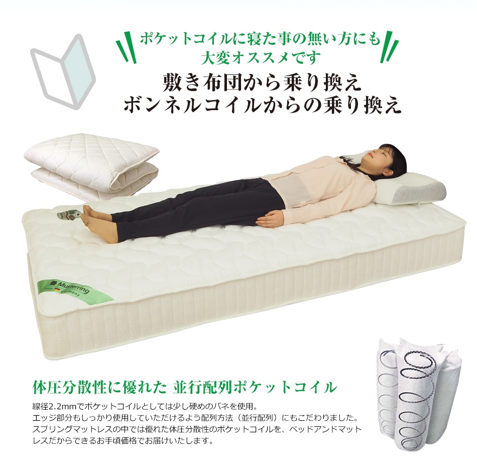 マットレス ポケットコイル シングル セミダブル ムスタリング MR300PR ロール梱包 コンパクト梱包 体圧分散 寝心地 ベッド 圧縮ロール 送料無料 スプリングマットレス