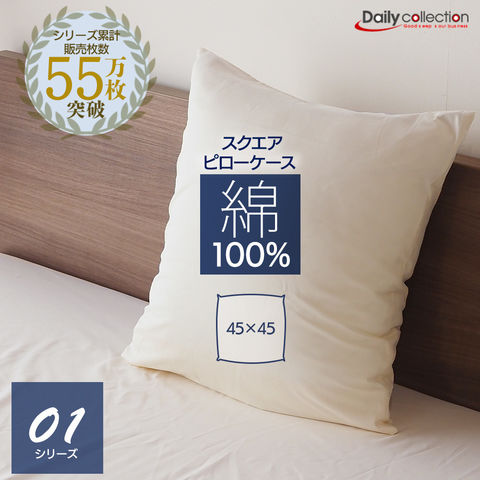 デイリーコレクション 綿100% 正方形 ピローケース クッションカバー スクエアピローケース 45×45cm 65×65cm 80×80cm SQ45 SQ65 SQ80 ピローケースのみ ハーフボディサポート ヨーロピアンピロー ホテル仕様 安眠 快眠