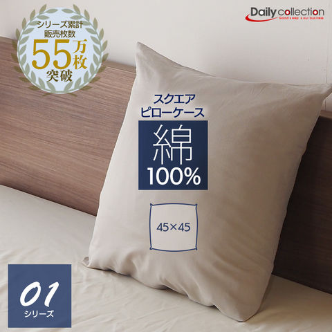 デイリーコレクション 綿100% 正方形 ピローケース クッションカバー スクエアピローケース 45×45cm 65×65cm 80×80cm SQ45 SQ65 SQ80 ピローケースのみ ハーフボディサポート ヨーロピアンピロー ホテル仕様 安眠 快眠