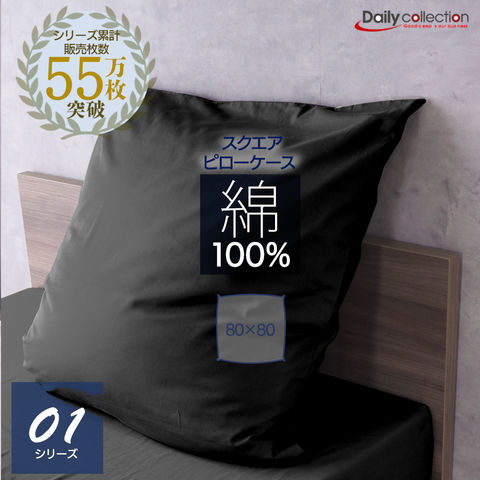 デイリーコレクション 綿100% 正方形 ピローケース クッションカバー スクエアピローケース 45×45cm 65×65cm 80×80cm SQ45 SQ65 SQ80 ピローケースのみ ハーフボディサポート ヨーロピアンピロー ホテル仕様 安眠 快眠