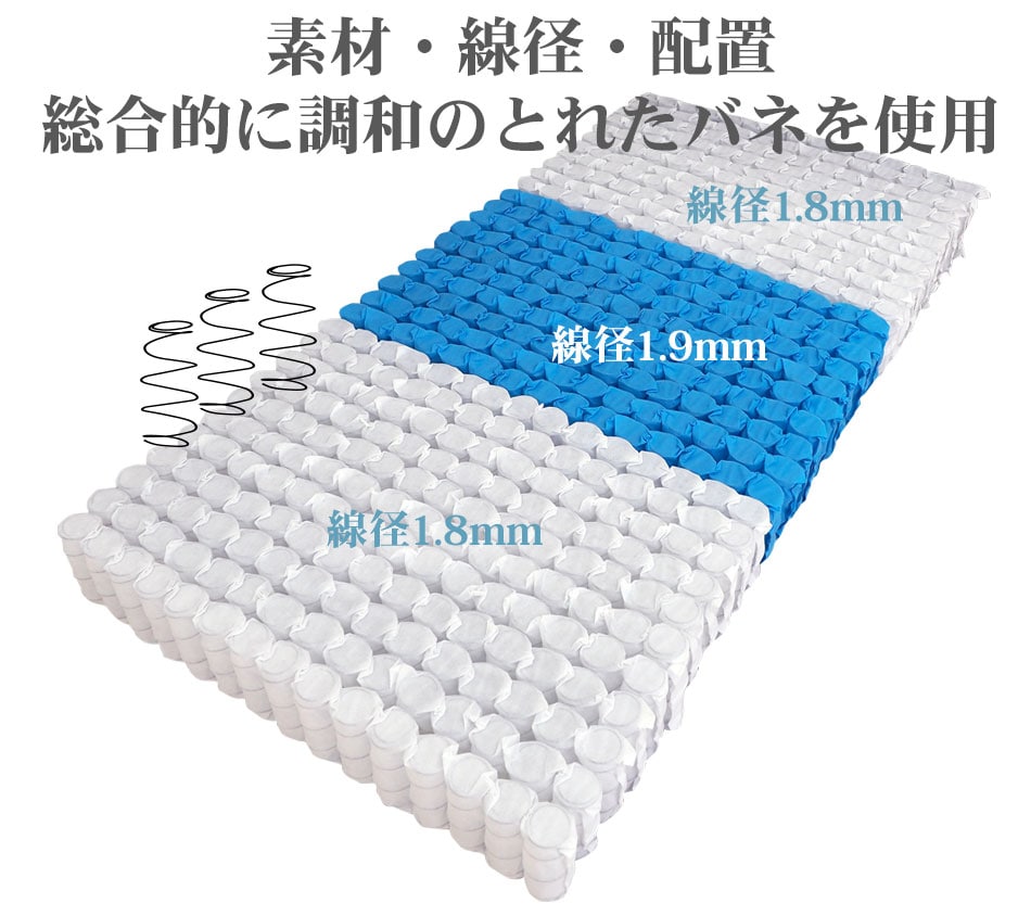 85SS:線径1.8mm/1.9mm ポケットコイル 416個 5.5巻