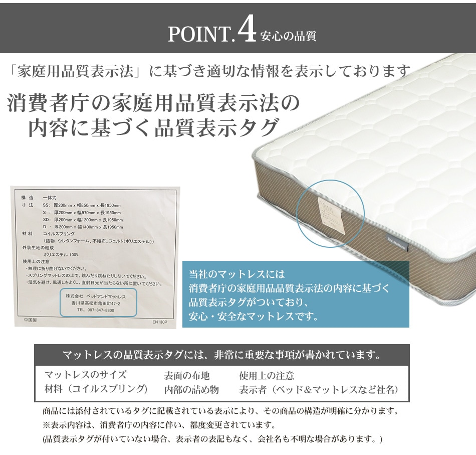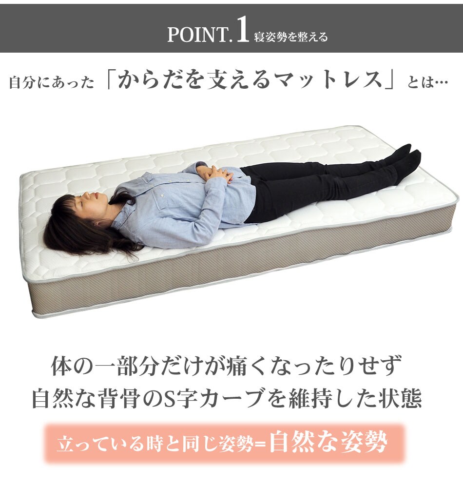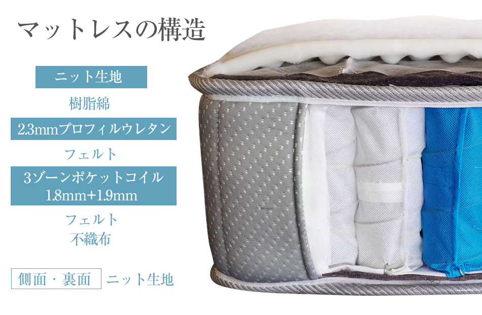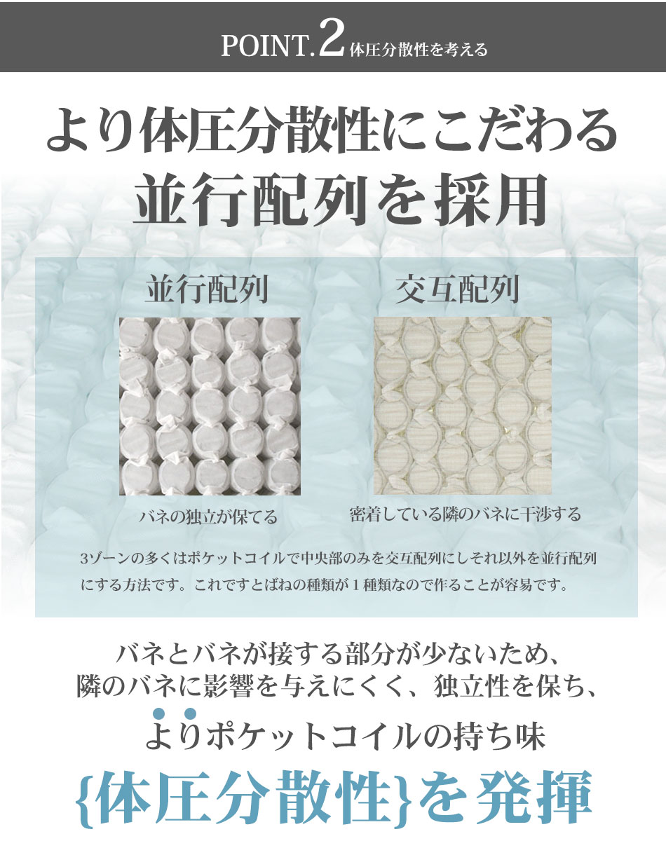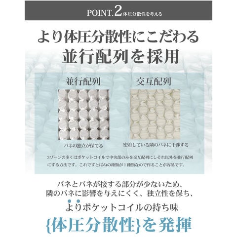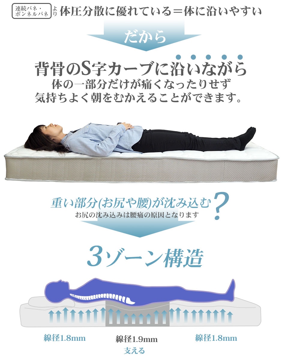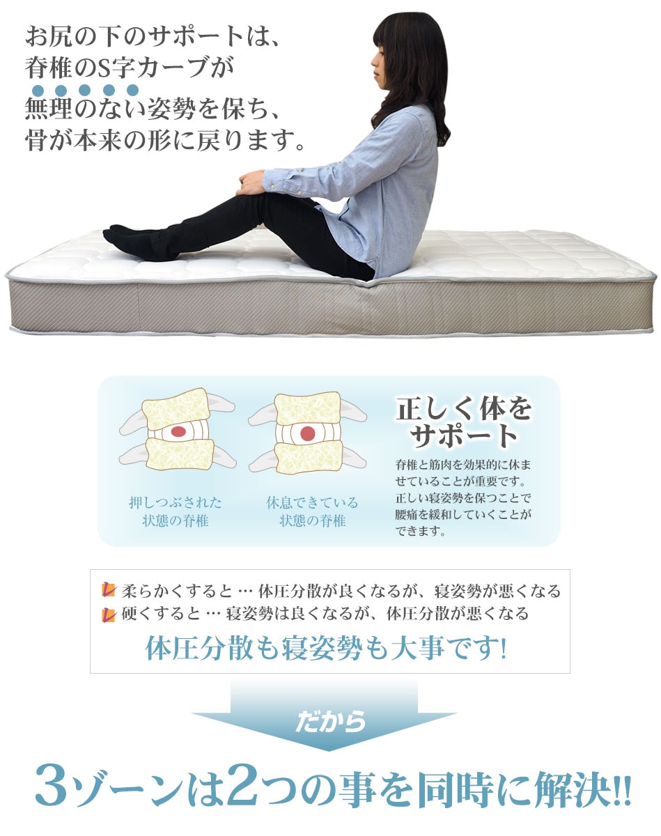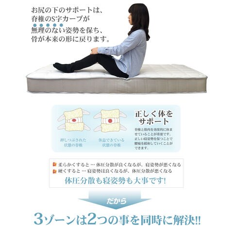 マットレス ポケットコイル シングル セミダブル ダブル スモールシングル セミシングル 3ゾーン構造 EN130P (片面仕様)調和のとれた 3ゾーン 寝姿勢補正 ベッド用マットレス 厚さ20cm 通気性 スプリングマットレス