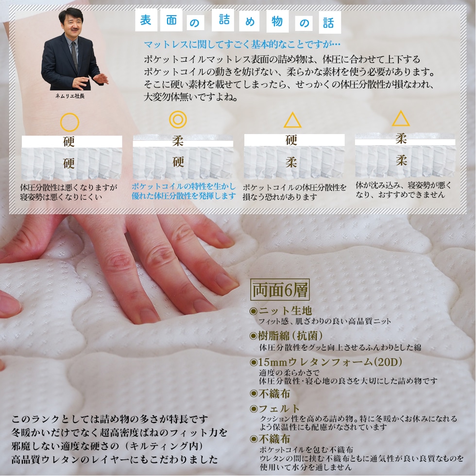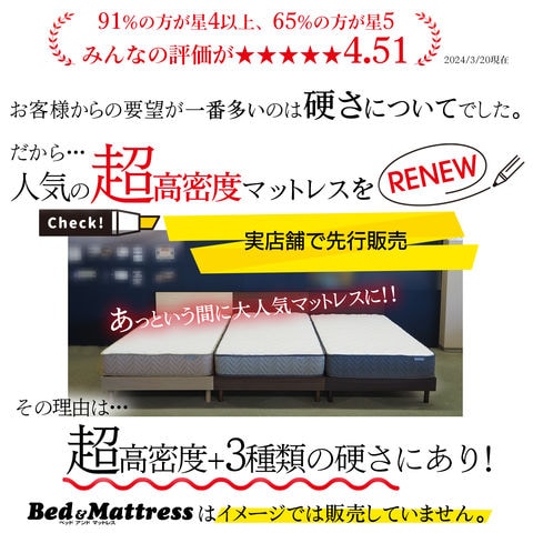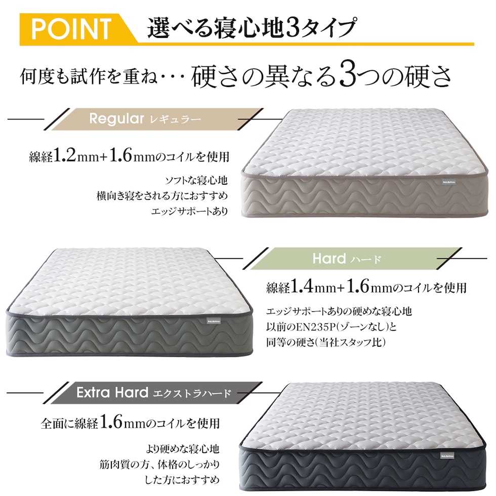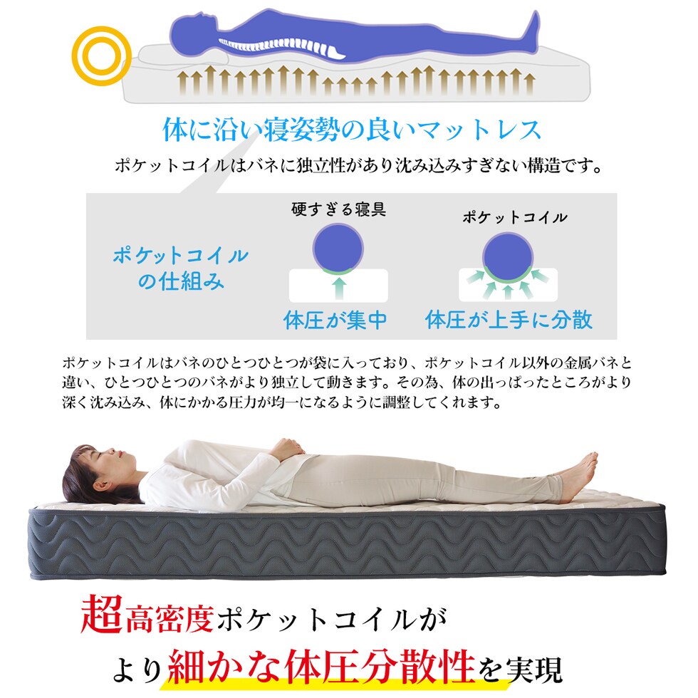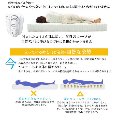 ■快適な眠りを追求するあなたに、RENEWポケットコイルマットレスST235Pがおすすめです。このマットレスは、超高密度ポケットコイルを採用し、体圧分散性に優れた設計で、あなたの寝姿勢をしっかりサポートします。硬さが選べる3タイプ(レギュラー、ハード、エクストラハード)から、お好みに合わせて最適な寝心地を見つけることができます。