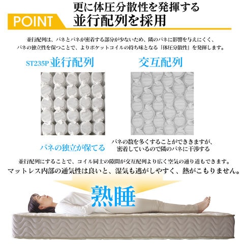 ■サイズ展開も豊富で、シングルからダブル、さらにスモールシングルやセミシングルまで、お部屋のスペースやライフスタイルに合わせて選べます。あなたの睡眠環境をグレードアップさせる超高密度ポケットコイルST235Pで、毎晩の睡眠を贅沢な時間に変えましょう。