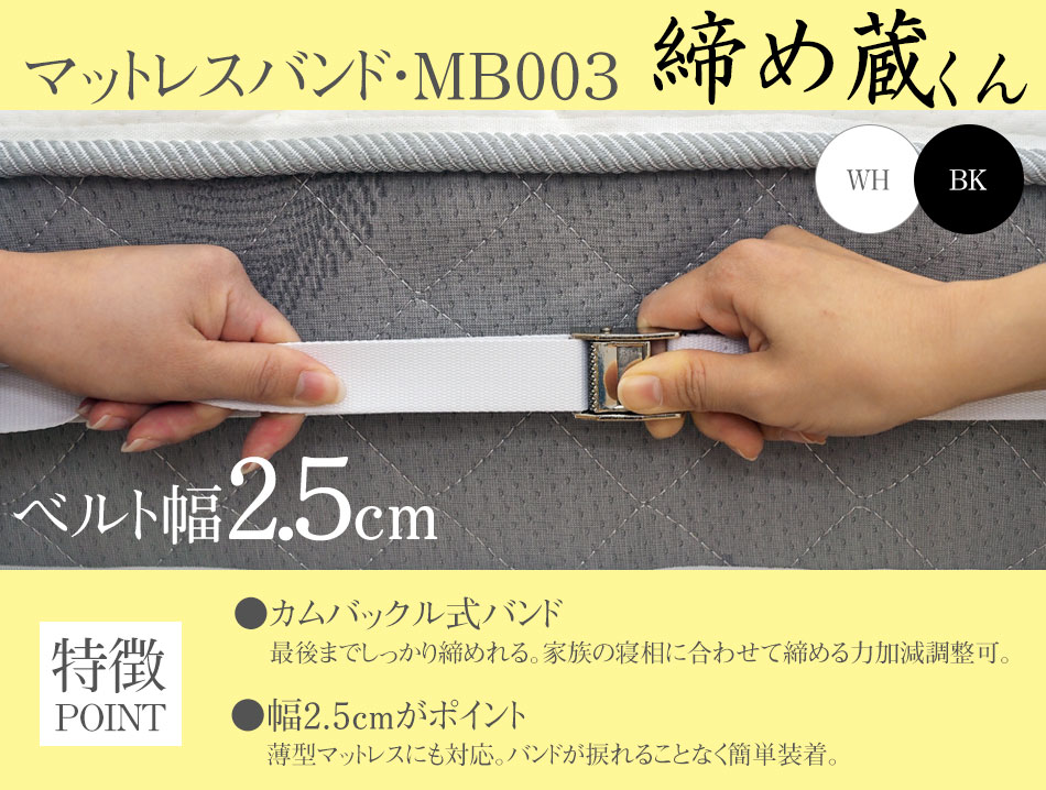 マットレスバンド 2台用 送料無料 ズレ防止 すきま防止 ベルト マットレス固定 マットレスベルト ファミリーサイズ ファミリーマットレス 最大ダブル+ダブルサイズまで対応 MB003 締め蔵くん