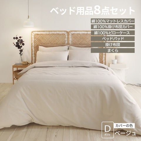 ベッド用品6点セット ベッドカバーセット マットレスカバー 掛け布団カバー ピローケース ベッドパッド 掛け布団 まくら ボックスシーツ キナリ グレー ベージュ グリーン