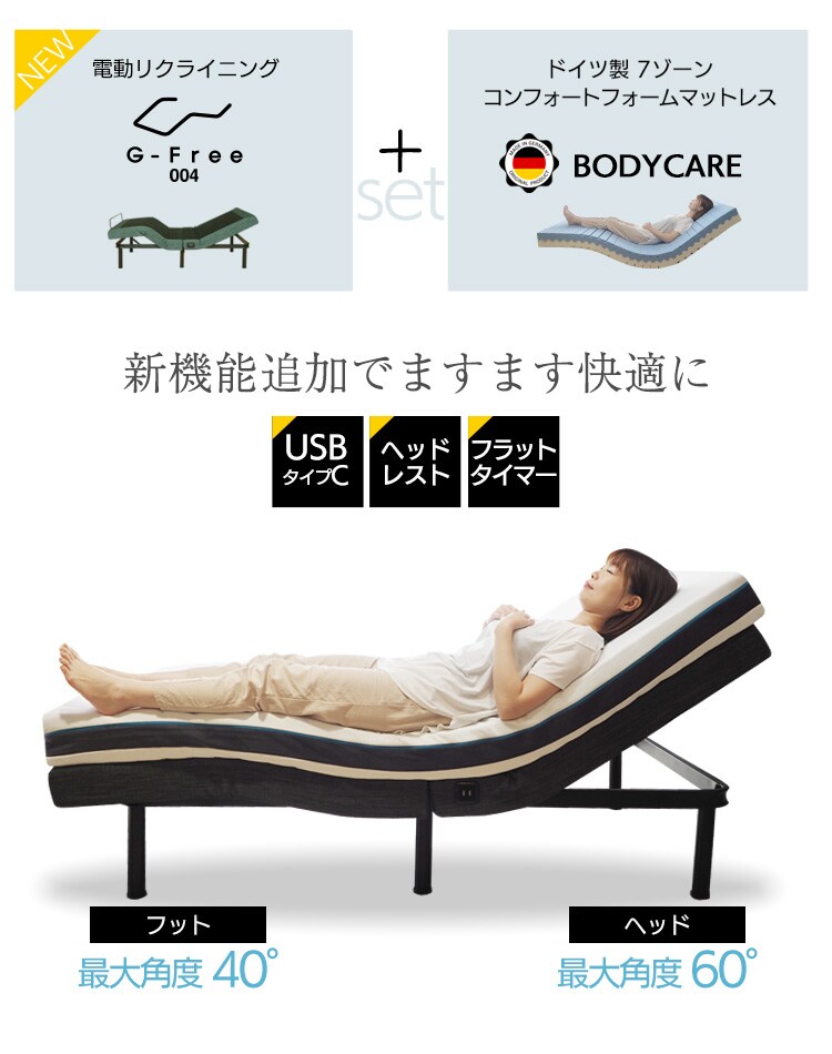 電動ベッド マットレス付き シングル ボディーケア G-FREE004 アジャスタブルベッド 送料無料 電動リクライニング ソファーベッド 開梱設置付 シングルベッド