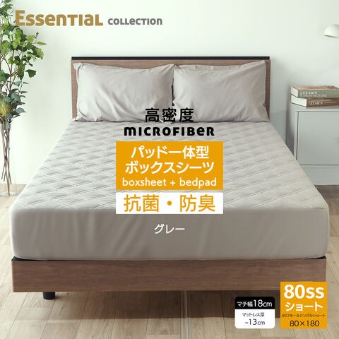 パッド一体型ボックスシーツ マイクロファイバー ボックスシーツ 80SSショート BP00 グレー ベッドシーツ ショートサイズ(長さ180cm) マチ幅18cm(マット厚13cmまで対応)