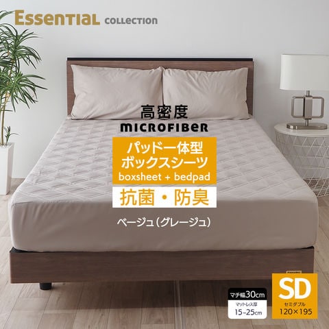 パッド一体型ボックスシーツ マイクロファイバー ボックスシーツ セミダブル BP00 ベージュ(グレージュ) ベッドシーツ マチ幅 30cm