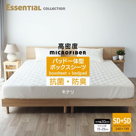 パッド一体型ボックスシーツ マイクロファイバー ボックスシーツ セミダブル+セミダブル BP00 キナリ ベッドシーツ マチ幅 30cm