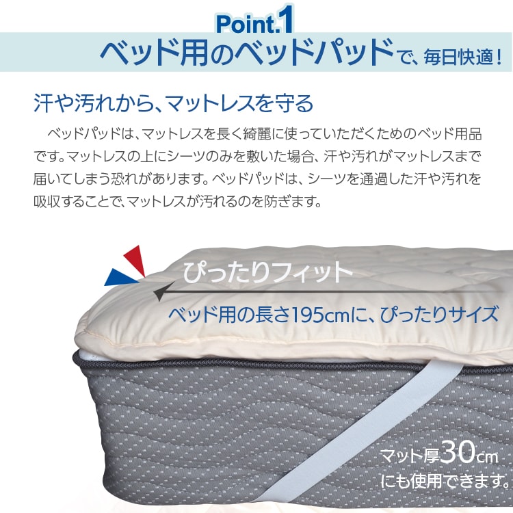 ベッドパッドは、マットレスを長く綺麗に使用するための本格的ベッド用品です。