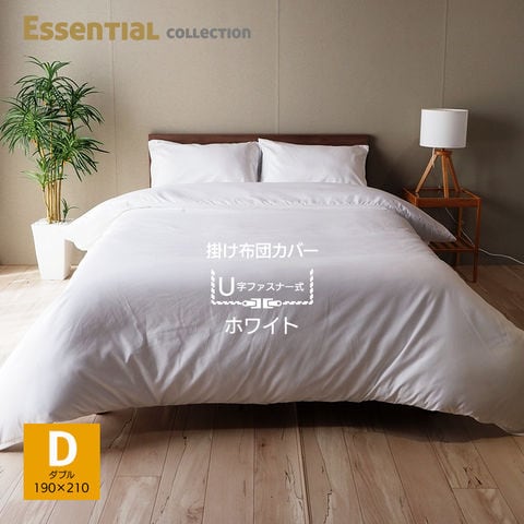 掛け布団カバー マイクロファイバー エッセンシャルコレクション U00 ダブル ホワイト 無地 シンプル ナチュラル アースカラー 洗濯OK U字ファスナー