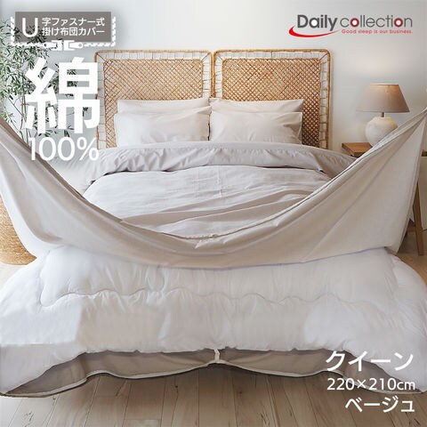 掛け布団カバー クイーン ベージュ 綿100% コットン 無地 シンプル ナチュラル アースカラー 洗濯OK 掛けふとんカバー 綿 シーツ カバー U字ファスナー コの字