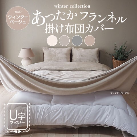 掛け布団カバー 冬用 あったか フランネル 掛布団カバー U字ファスナー 高密度 厚みしっかり U20 キナリ グレー ウィンターベージュ グレージュ ウィンターコレクション